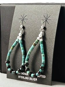 Native American earrings stand out for their intricate craftsmanship and timeless designs. Each pair is handcrafted by skilled artisans from Navajo, Zuni, Hopi, and Santo Domingo tribes, ensuring every piece is unique. From delicate turquoise studs to bold statement dangles, these earrings suit any style and occasion.